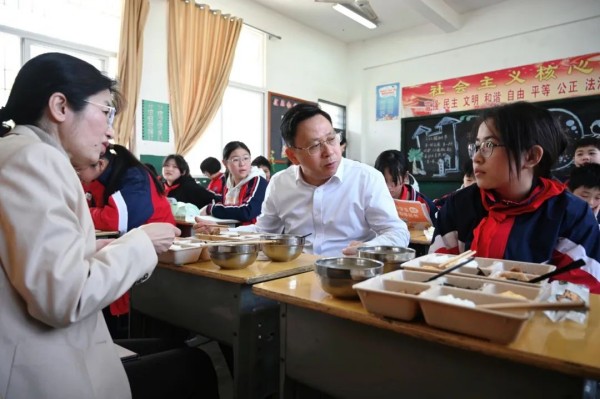 他叮嘱学校要根据孩子们的口味和成长需求,科学营养搭配,确保吃得安全、健康。他还通过电话连线学校家委会的家长,了解陪餐情况,听取家长对校园餐的意见建议,希望加强“家校社”联动,共同为学生的健康成长营造良好环境。